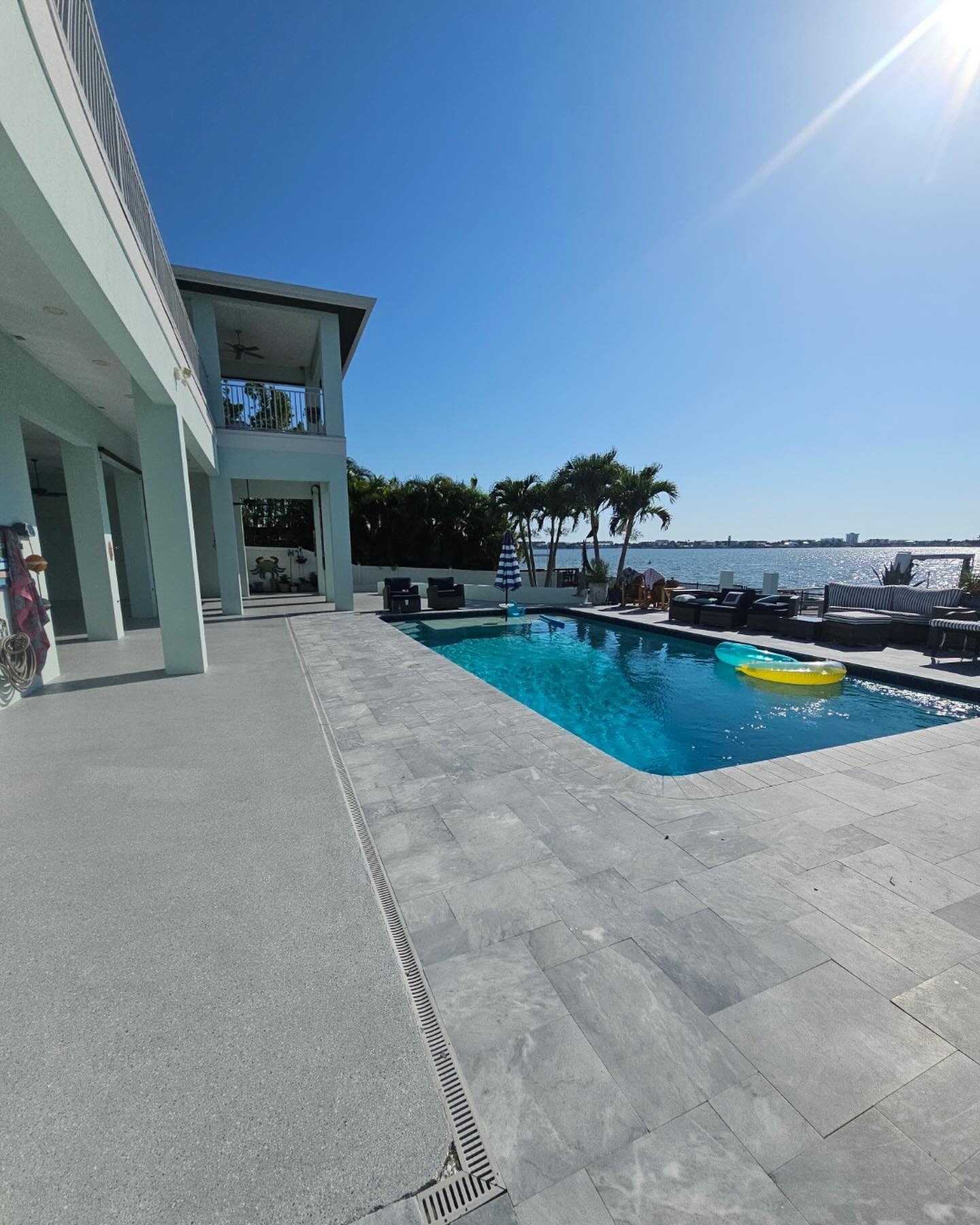 We ensure your concrete is perfectly level, all cracks and chips are filled, and the surface is prepared with our high-quality polyaspartic compound, ready to adhere. If there is an existing epoxy coating, we will thoroughly grind it off before starting the process.