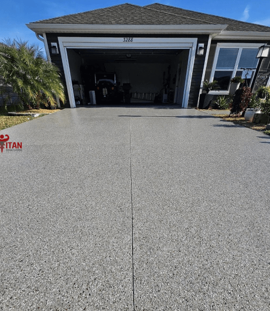 Titan Concrete Contractors offers exceptionally durable garage flooring and concrete coating systems that outperform other coatings on the market. Our superior to epoxy floors are designed to resist chipping, cracking, and peeling, ensuring long-lasting quality. Plus, with a quick cure time, you can walk on your new floors in just 6 hours and safely park your car or move furnishings back in place within 24 hours. We provide a vast selection of garage flooring finishes, including full broadcast options that mimic the look of natural stone, along with over 150 vibrant colors to choose from. Whether you’re in Nashville, Chattanooga, Murfreesboro, Franklin, Clarksville, or nearby areas, Titan’s epoxy flooring solutions will elevate the aesthetic and durability of any concrete or garage floor.