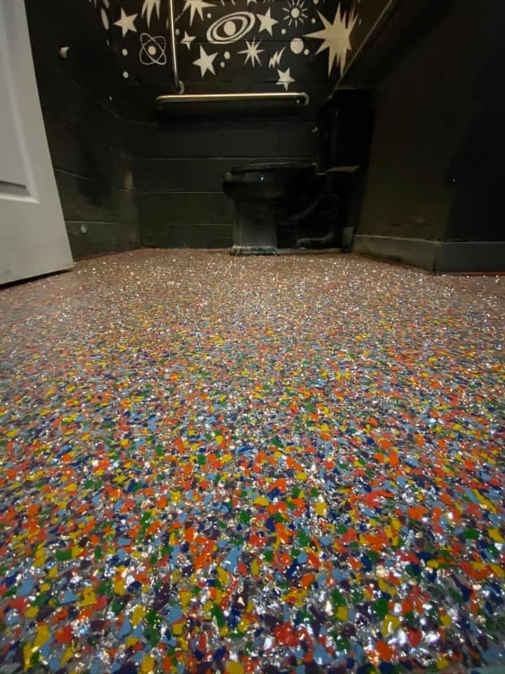 Our floors are far less toxic than epoxy, and are graded for food processing facilities. You could serve a meal on them.