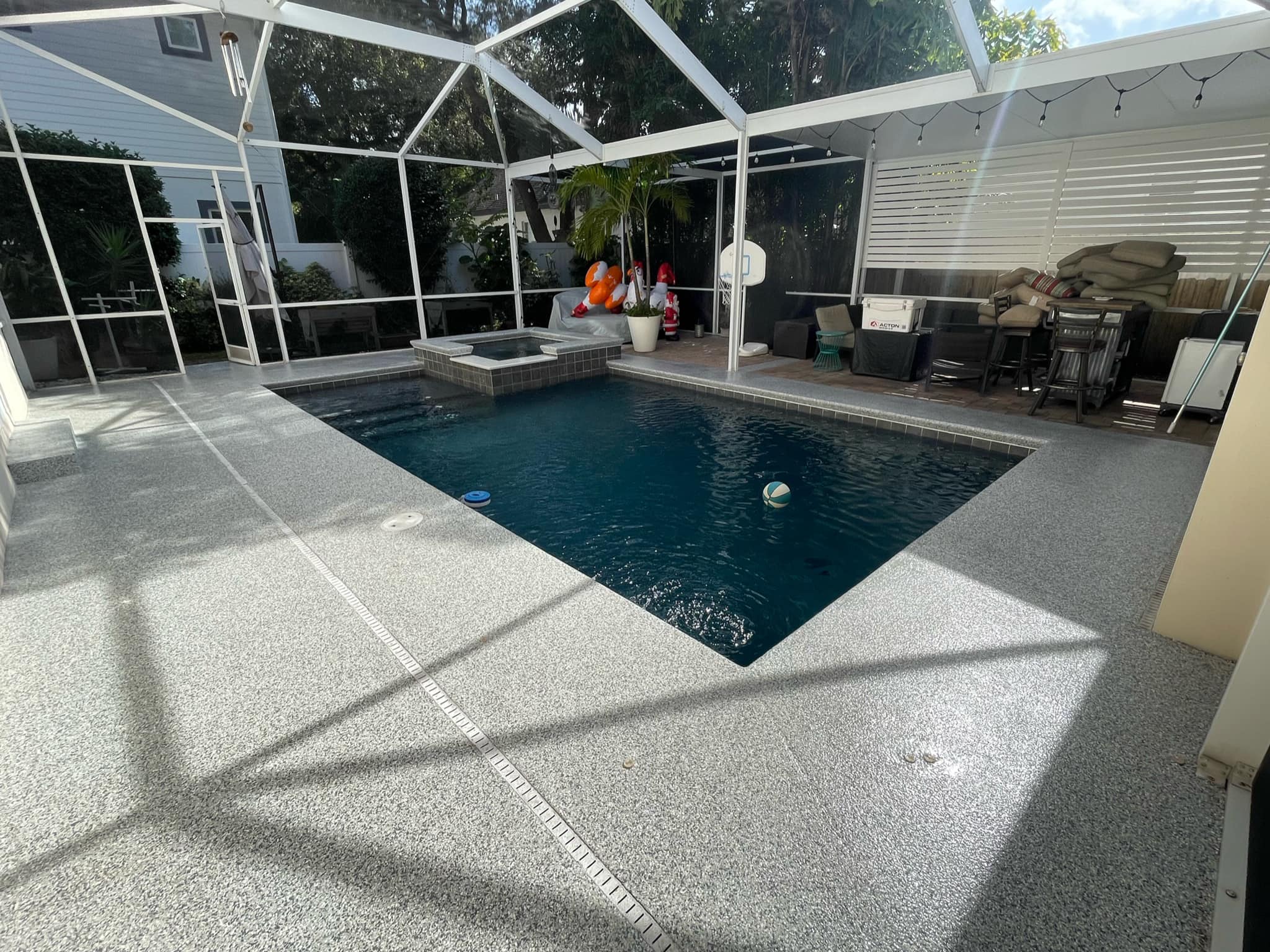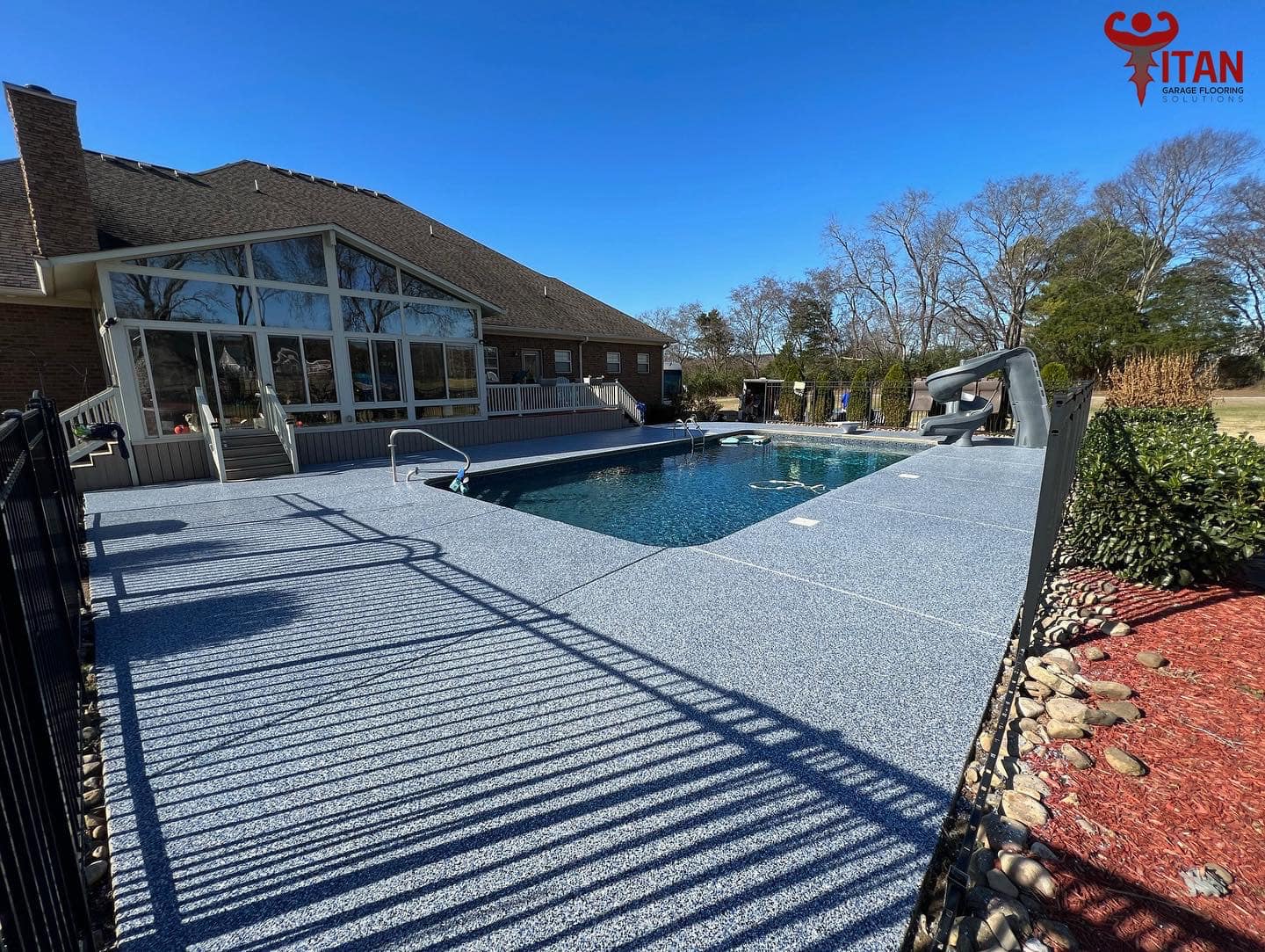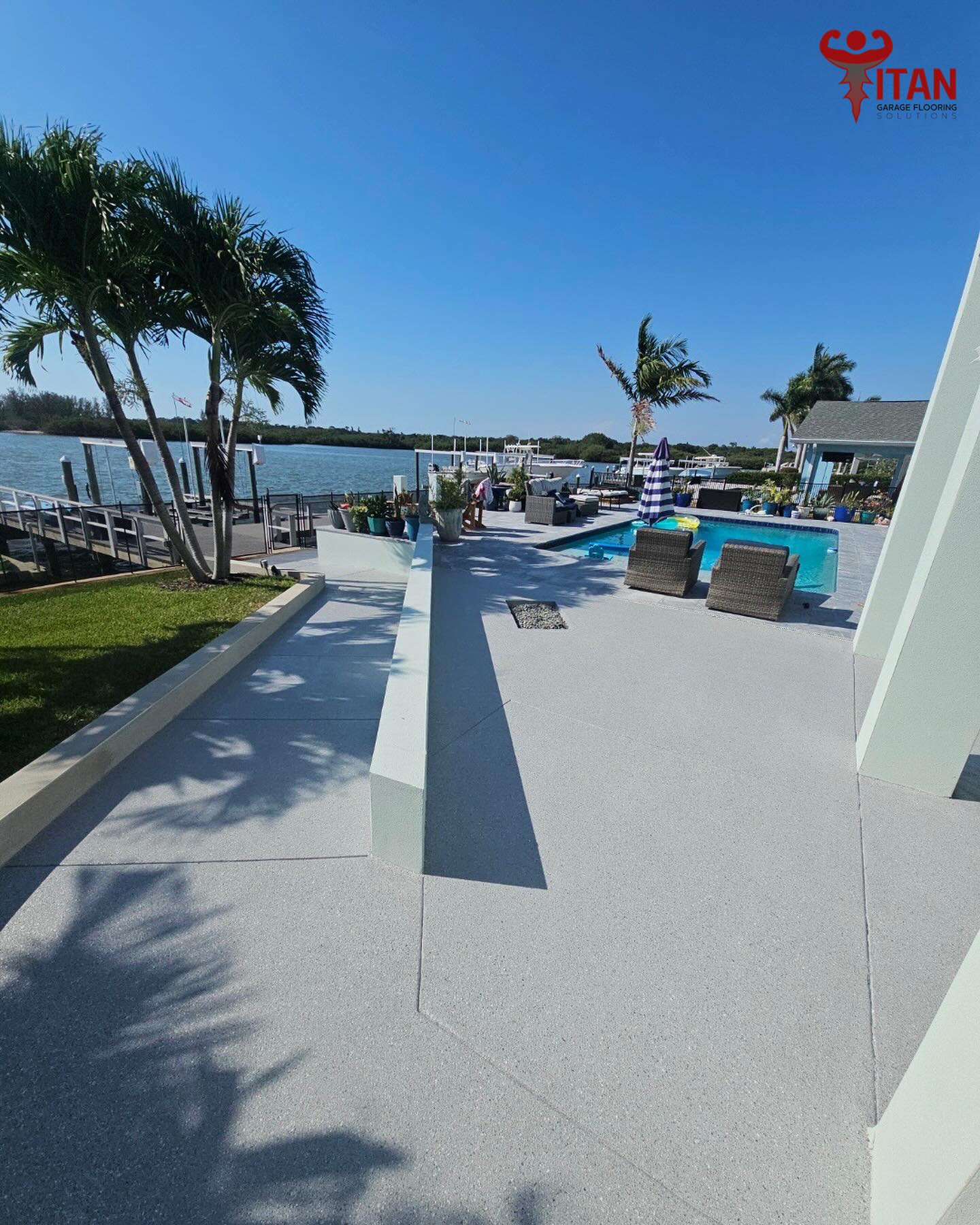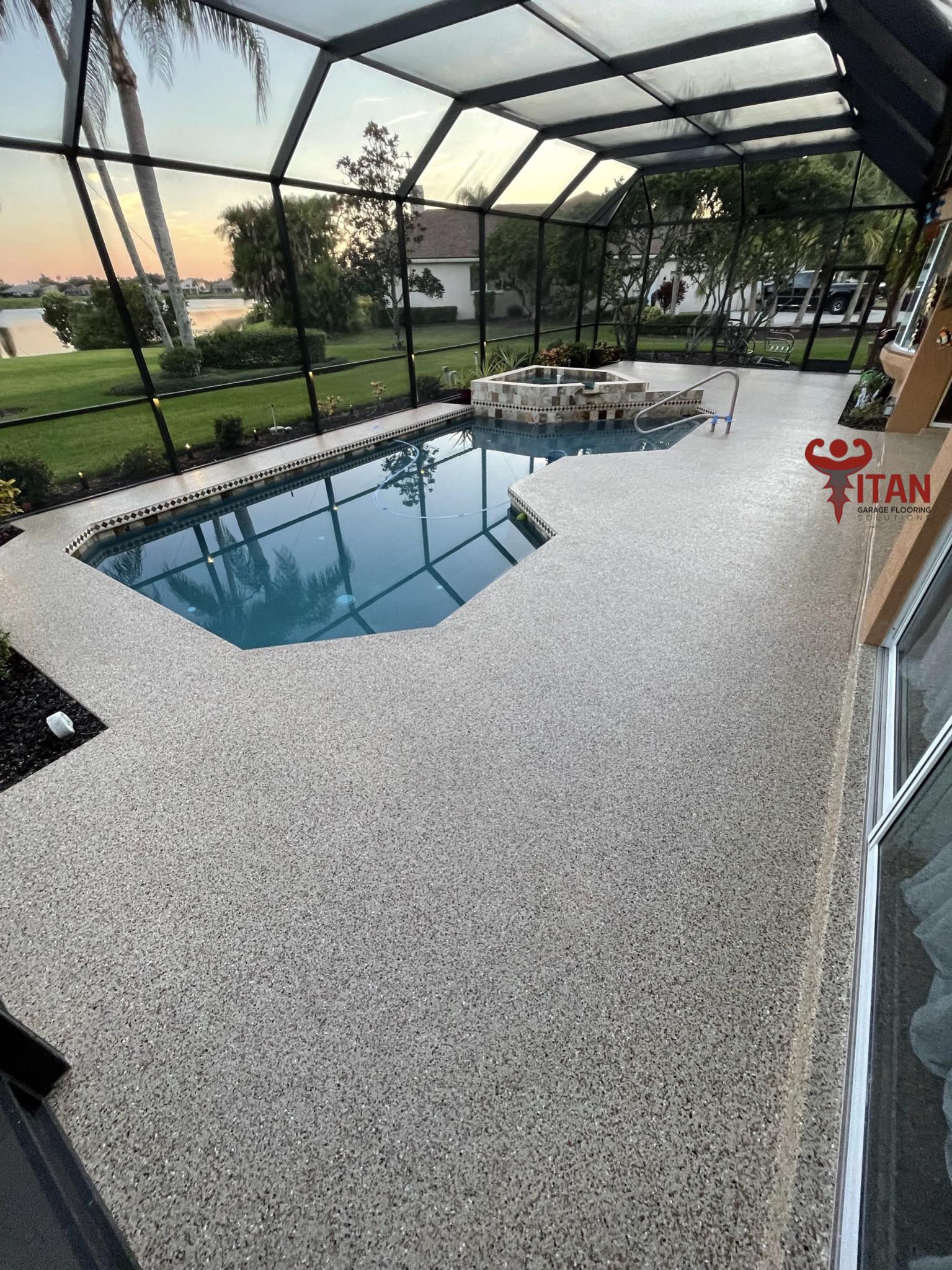 Titan Garage Flooring Applications offers cutting-edge polyaspartic outdoor flooring technology that sets the standard for durability, aesthetics, and performance. Unlike traditional outdoor living epoxy coatings, our polyaspartic flooring provides superior resistance to abrasions, chemicals, and UV rays, ensuring a long-lasting, pristine finish that won’t yellow or peel over time. With rapid curing times, our installation process is quick and efficient, minimizing downtime and allowing you to enjoy your newly upgraded patio sooner. Additionally, the seamless, non-slip surface not only enhances safety but also makes cleaning and maintenance a breeze. Choose Titan’s polyaspartic outdoor living flooring for a resilient, attractive, and low-maintenance solution that adds significant value and functionality to your space.