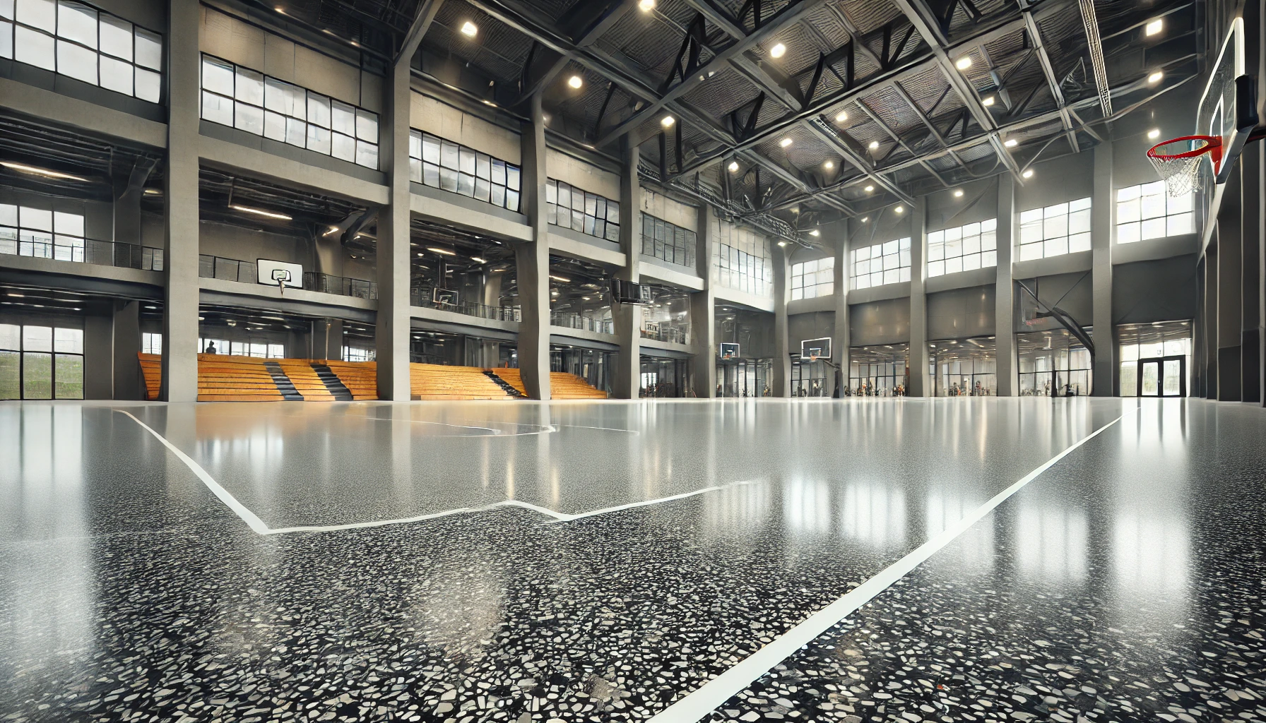 Titan’s polyaspartic and polyurea basecoats surpass traditional epoxy coatings with faster cure times, superior durability, and resistance to abrasions, impacts, chemicals, and UV rays, ensuring a long-lasting, pristine finish. Their flexibility and excellent adhesion allow them to withstand temperature fluctuations and substrate movements without cracking or peeling. Additionally, their superior moisture resistance and versatility in various temperatures make them ideal for multiple applications. The seamless, non-porous surface of these coatings is easy to clean and maintain, providing a high-performance stadium flooring solution that remains pristine for years.
